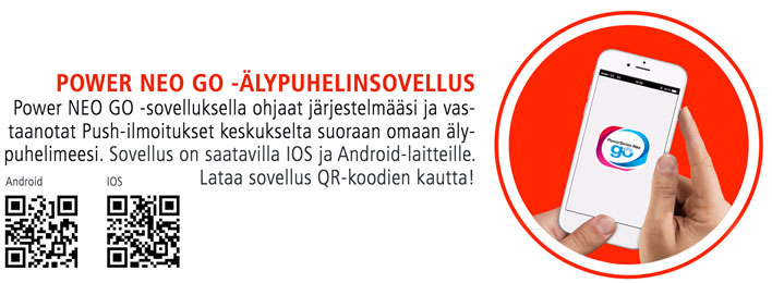 Etälukutunnistimet sekä ilmaiseksi ladattava mobiiliaplikaatio PowerSeries NEO GO (Android, iOS) tuovat käyttömukavuutta.